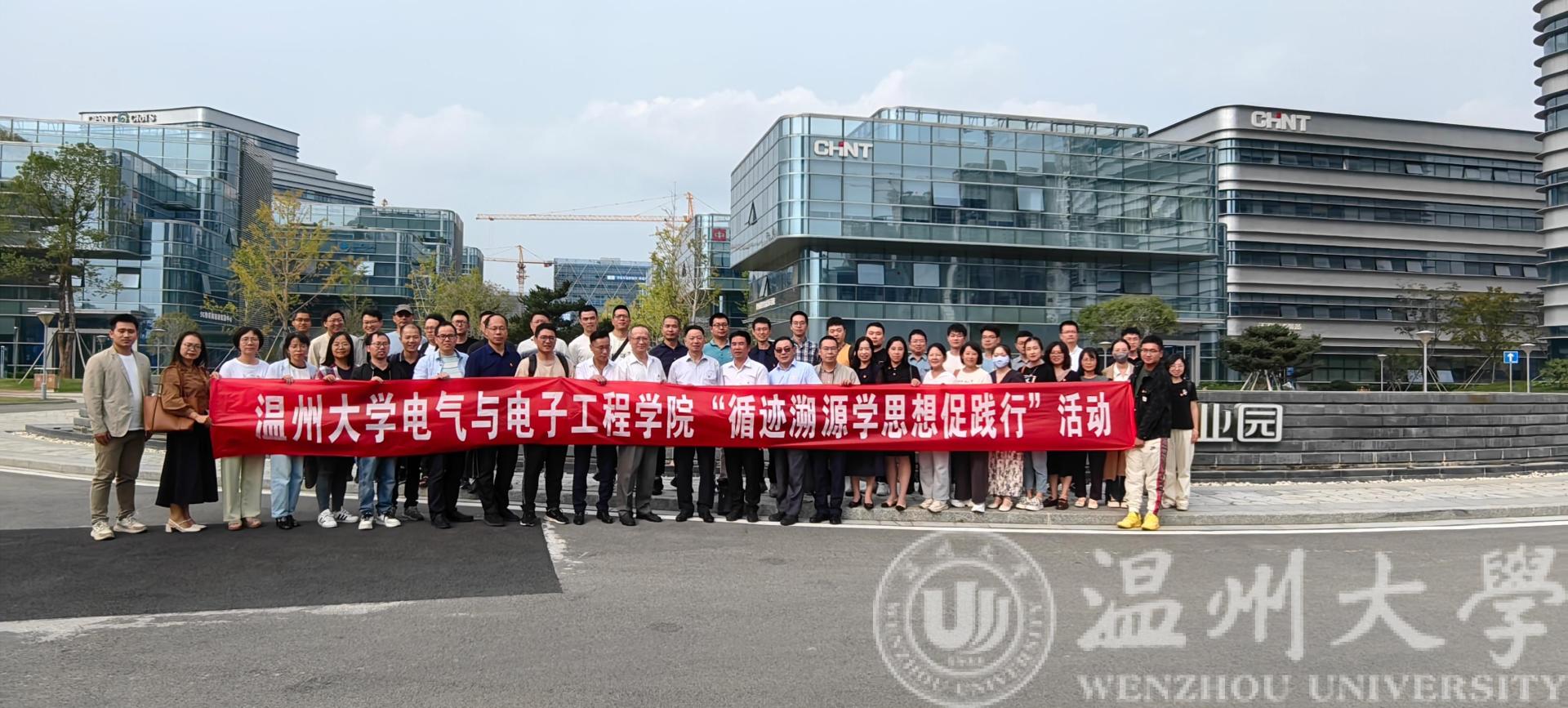 为进一步推进学习贯彻习近平新时代中国特色社会主义思想主题教育走深走实,10月25日下午,黑料网 黑料网 党委组织全体学院班子成员和全体教师党员前往浙江省主题教育现场教学示范点——乐清市电气产业先进制造业集群(正泰物联网传感产业园)开展“循迹溯源学思想促践行”活动。