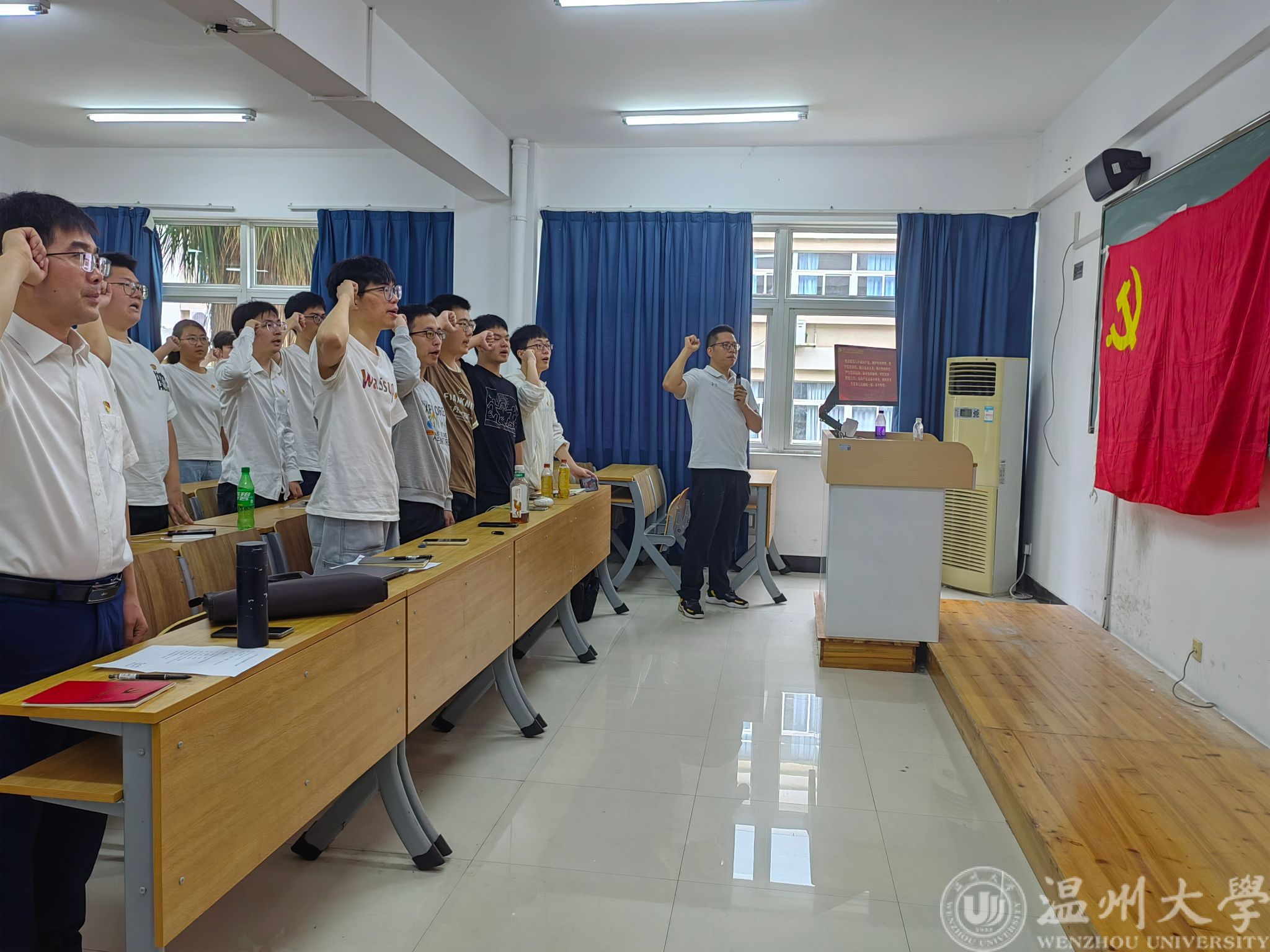 “我志愿加入中国共产党......随时准备为党和人民牺牲一切,永不叛党”。全体毕业生党员高举右手,在学院团委书记廖晓安同志的带领下重温入党誓词,重忆入党初心。“面向这片红色,凝视着镰刀与锤头,举起我的右拳,无需更多言语,坚定的信念已在胸中澎湃!”毕业生党员们纷纷表示,这不仅是一次简单的重温,更是对自己党员身份的再次确认,对责任与担当的再次强化。