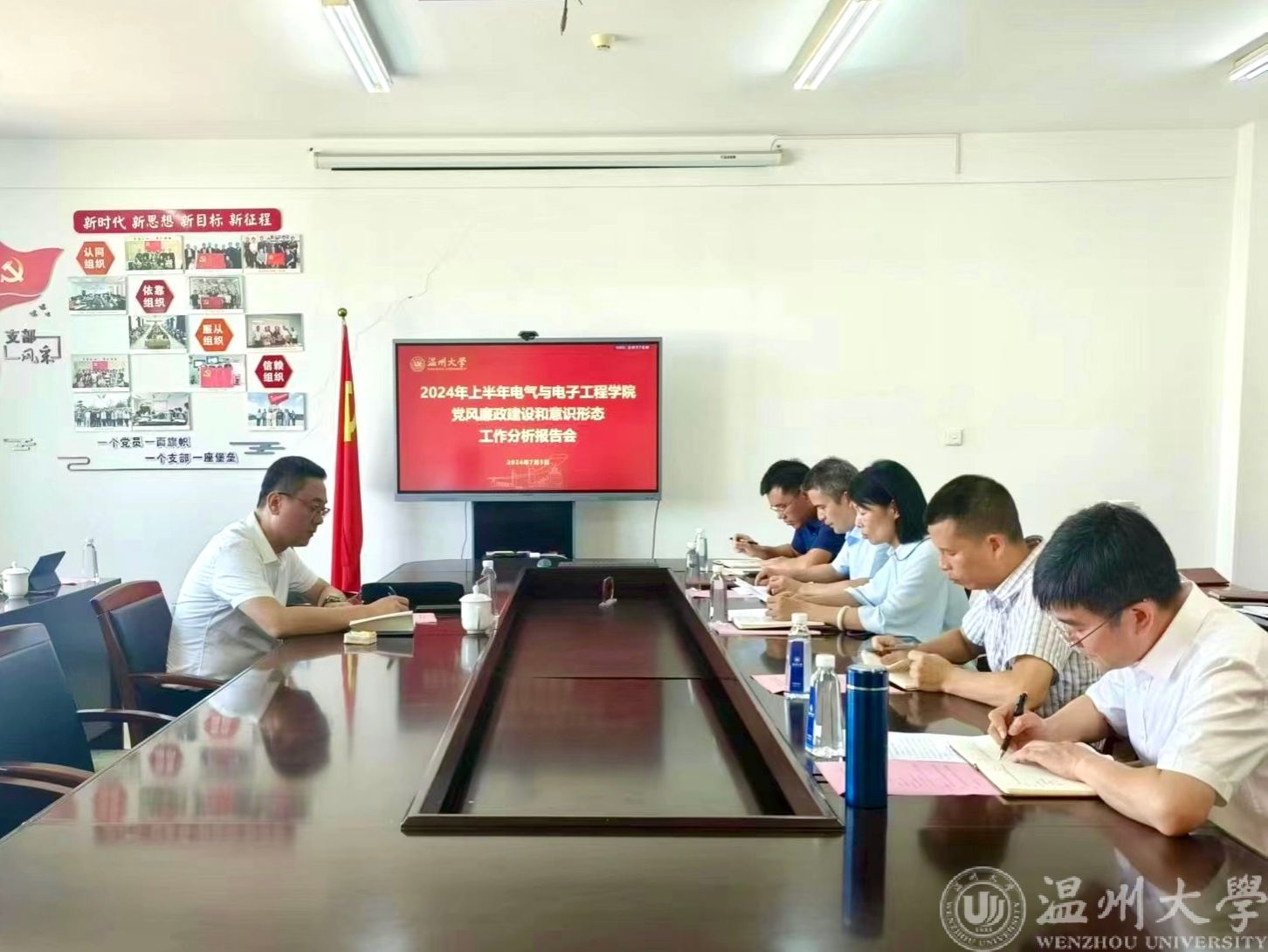 陈文远代表学院党委作2024年上半年学院党风廉政建设和意识形态工作分析报告,剖析了当前学院党风廉政建设和意识形态工作中存在的隐患问题及整改措施。班子成员对照“一岗双责”,对职责范围内的全面从严治党工作进行全面分析研判。