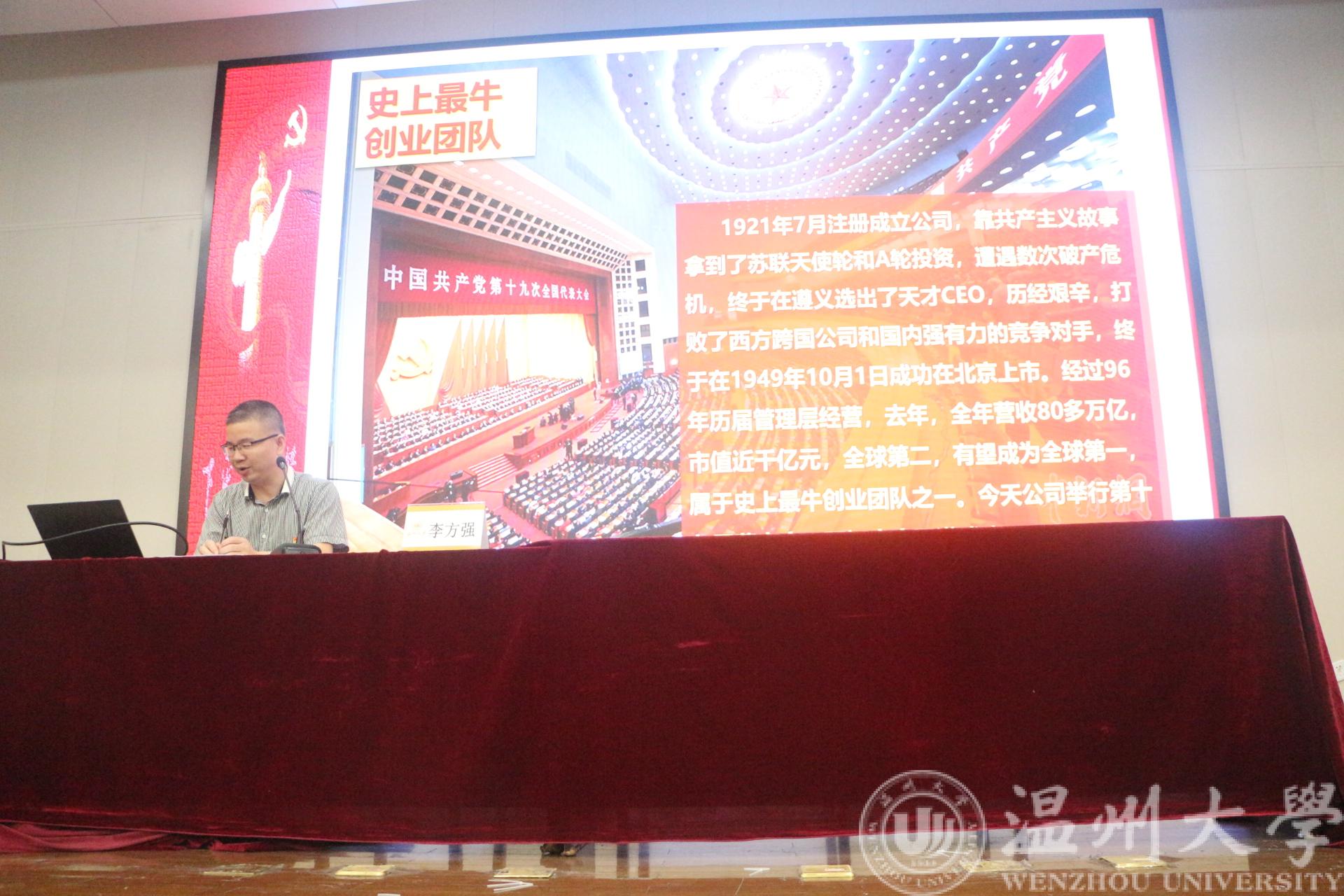 开班典礼结束后,随即开始此次培训班的第一场专题讲座,由黑料网 党委书记、分党校校长李方强开讲,他讲座的主题为“学党章知党史,做合格共产党员”。李书记从党章修订的历程出发,结合历史和实际事例,围绕着“什么是党章”“为什么学党章”“学党章学什么”几个问题,向学员们讲授了一场生动的党课。