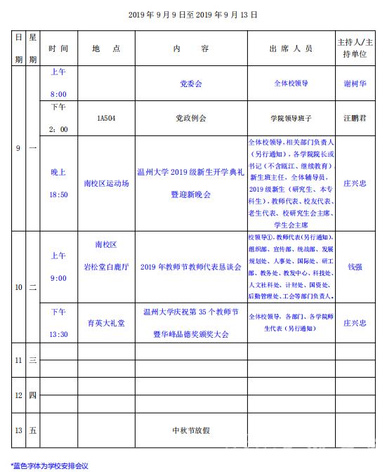学院第1周行事历