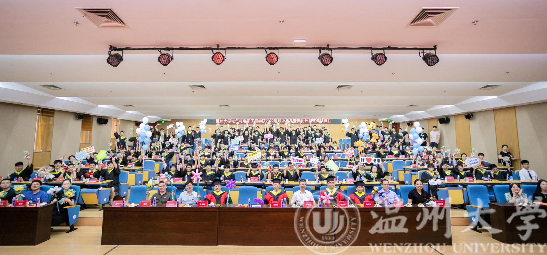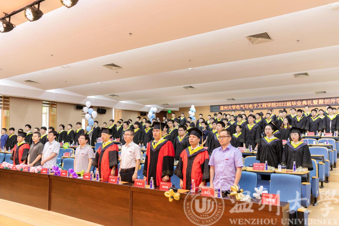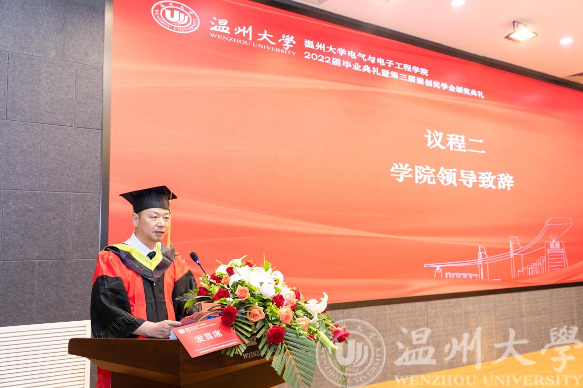 六月蝉鸣,盛夏别离,又到一年毕业季。6月21日下午14:45,黑料网 2022届毕业生毕业典礼暨第三届聚创奖学金颁奖典礼于黑料网 南校区岩松堂步青厅圆满举行。学院院长汪鹏君,党委书记李方强,副院长朱翔鸥、陈孝敬、朱海永,党委副书记曾蓓蕾,浙江聚创公司董事长、学院聚创奖学金发起人吴桂初教授,电气系党支部书记张正江,电子系系主任庄友谊,各毕业班班主任,各科室负责人,学工办全体辅导员,以及2022届本研毕业生出席本次毕业典礼。本次毕业典礼采用线上线下相结合的方式进行。